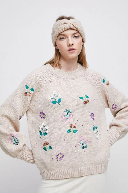 Πουλόβερ από τη συλλογή Medicine. Μοντέλο από πλεκτό ύφασμα με κέντημα.