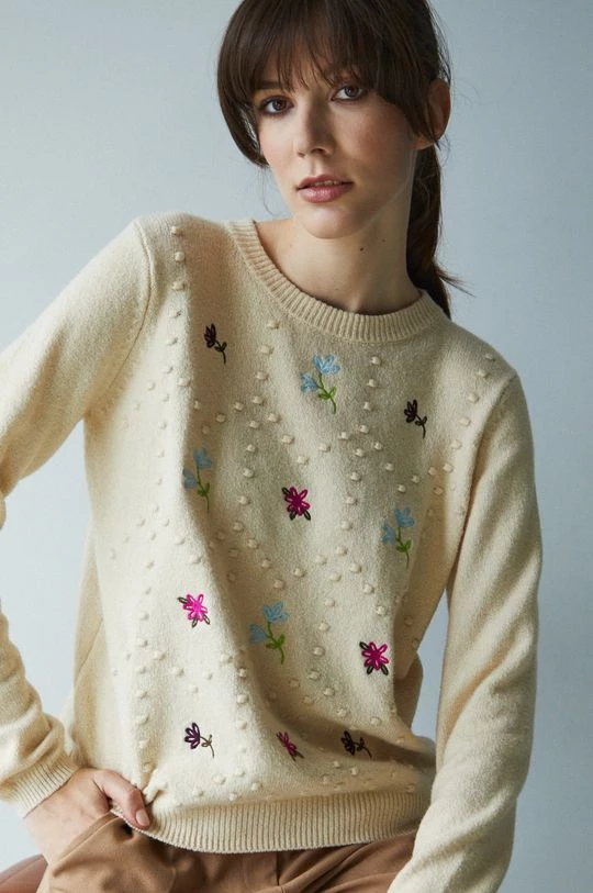 Πουλόβερ από τη συλλογή Medicine. Μοντέλο από πλεκτό ύφασμα με κέντημα.
