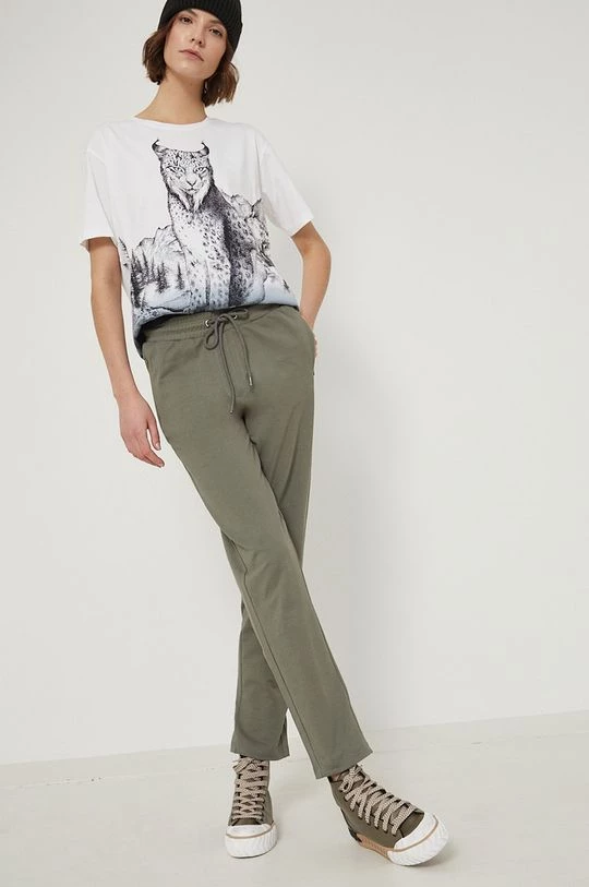 Παντελόνι από τη συλλογή Medicine. Μοντέλο από λείο πλεκτό.